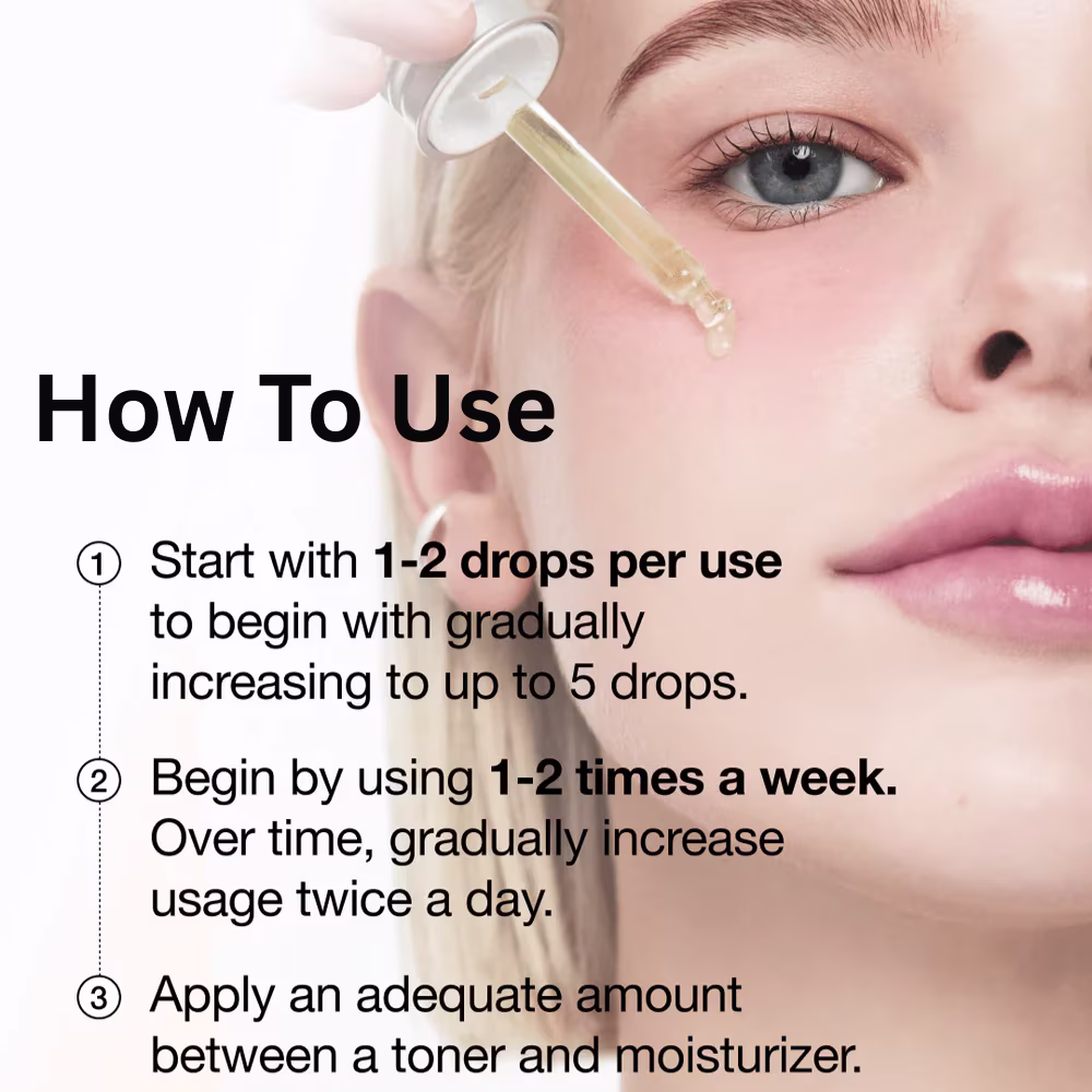 Frequency: You can use this serum in your AM and/or PM routine. If you’re new to acids, start by using it once a day or every other day. Most importantly: Always wear sunscreen during the day!